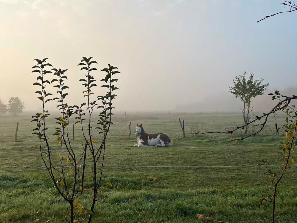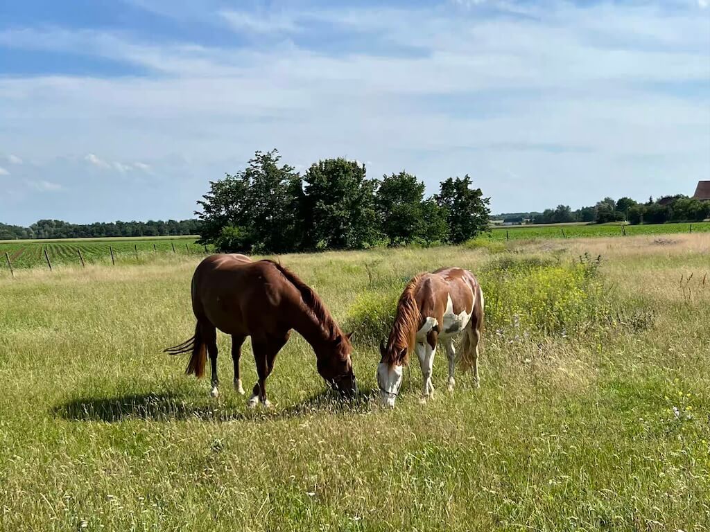 Der Ausblick vom Wohnbereich über die große Pferdekoppel in die Ferne, beruhigt und lässt keine Ablenkung zu. Ein ideales Refugium für Ruhe Suchende, Familien oder kleine Gruppen, die sich nach Entspannung sehnen und die Schönheit der Natur genießen möchten.